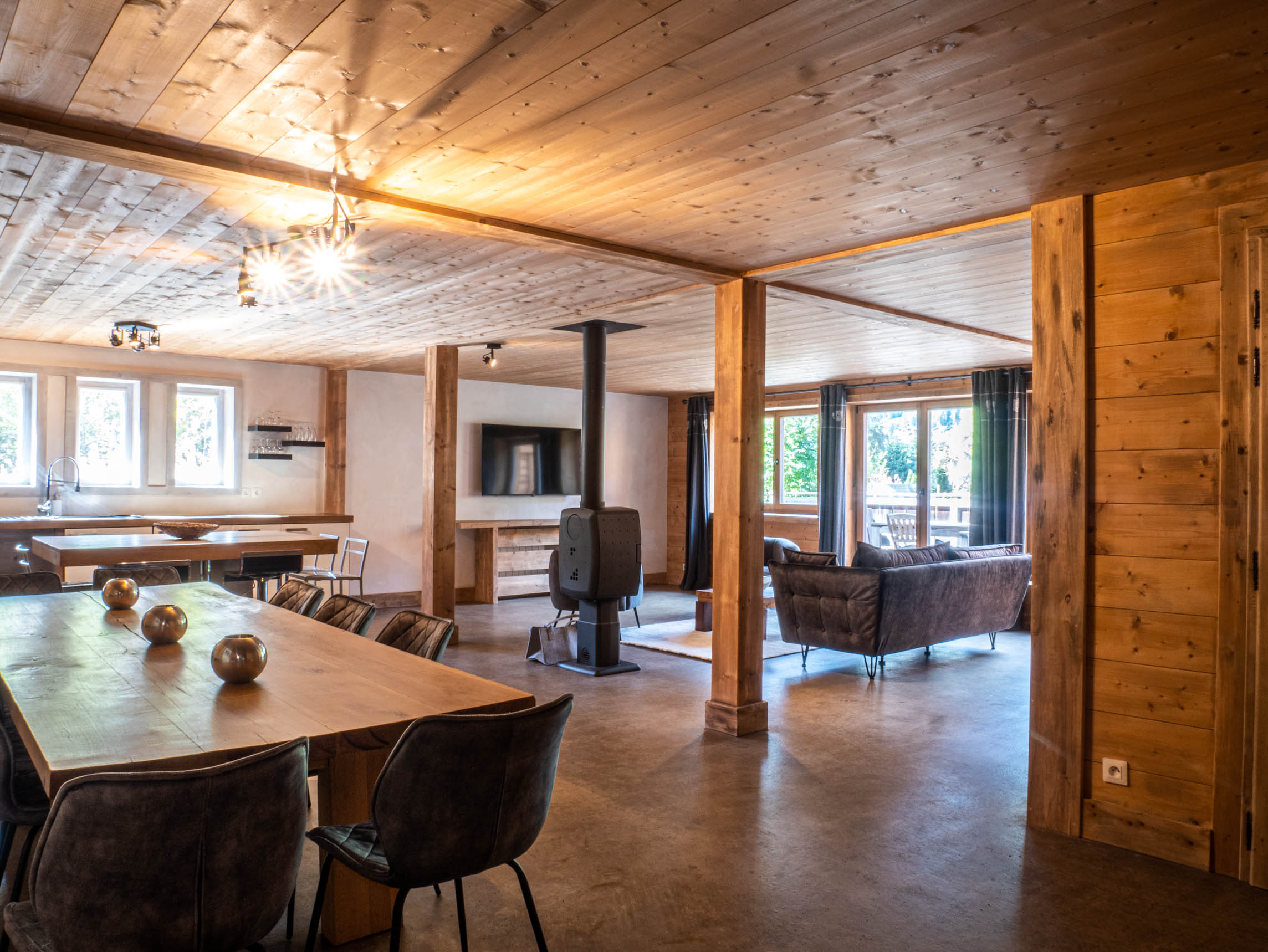Spacious 350 m² chalet located in the « Les Bois » area of Chamonix, close to the La Flégère ski lift. Beautiful natural setting with panoramic views of the peaks. Authentic alpine decor. Five bedrooms. Accommodates up to 11 people.