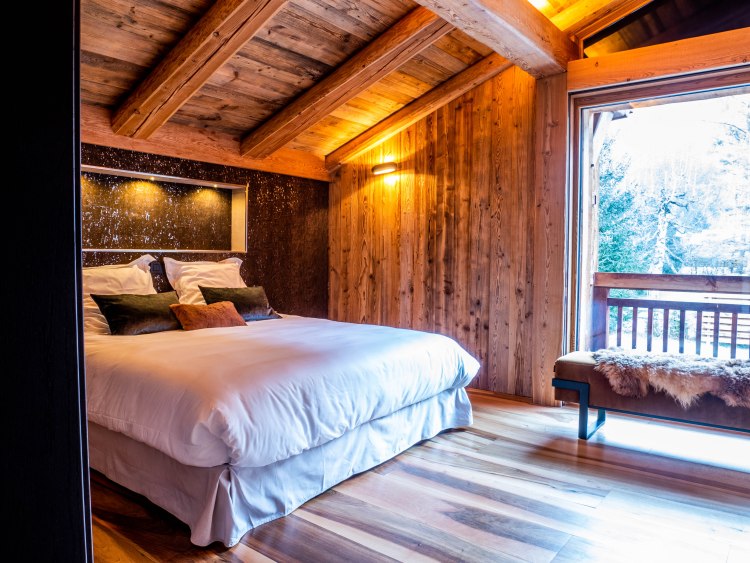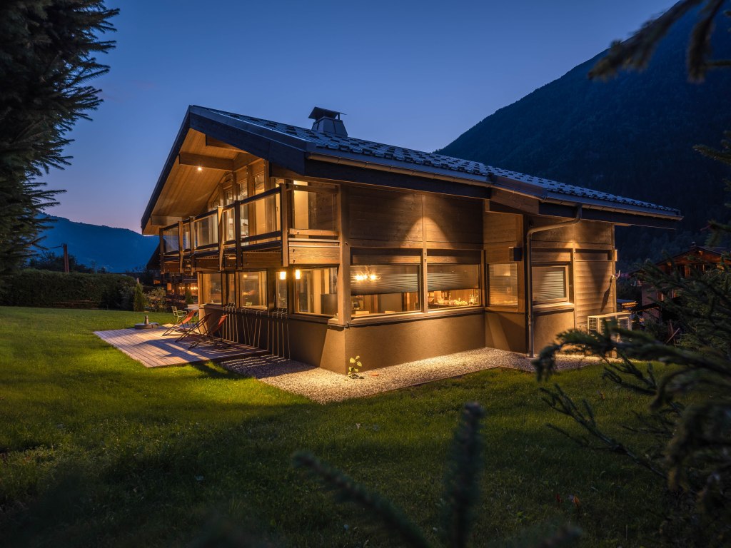 Ce magnifique chalet de luxe combine tradition et modernisme. Grace à ces grandes baies vitrées et son emplacement de rêve, il offre une vue magnifique sur le mont-blanc et l’aiguille du Midi. La chambre master à l’étage est un véritable havre de paix et bijoux de l’architecture. Quatre chambres supplémentaires sont situées au rez-de-chaussée avec un sauna et un salon. Vous apprécierez également le jacuzzi extérieur avec vue sur le glacier des Bossons. D’une surface de 350 m², situé à 10 min à pied du centre-ville de Chamonix, ce chalet satisfera toutes vos attentes.